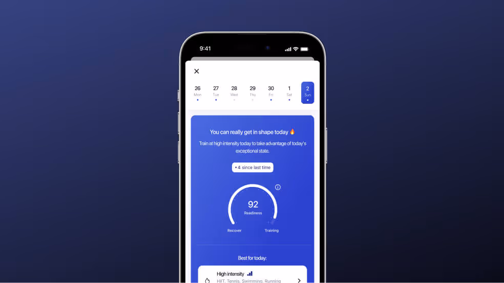 We weten al hoe we met data moeten werken. Maar nu hebben we de manier waarop we erover praten moeten veranderen. Het was niet langer een wereld van prestatie- en coachingstafels, er was behoefte aan een nieuwe taal die mensen niet vertelde hoe ze moesten sporten, maar hoe ze beter konden leven. Het creëerde een duidelijk dashboard, aanbevelingen voor de dag en inhoud die gebruikers leert luisteren naar hun eigen lichaam.